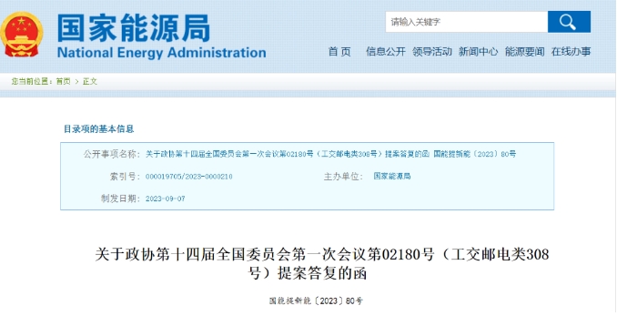 國(guó)家能源局在對(duì)十四屆全國(guó)人大一次會(huì)議第7024號(hào)建議的答復(fù)中指出: