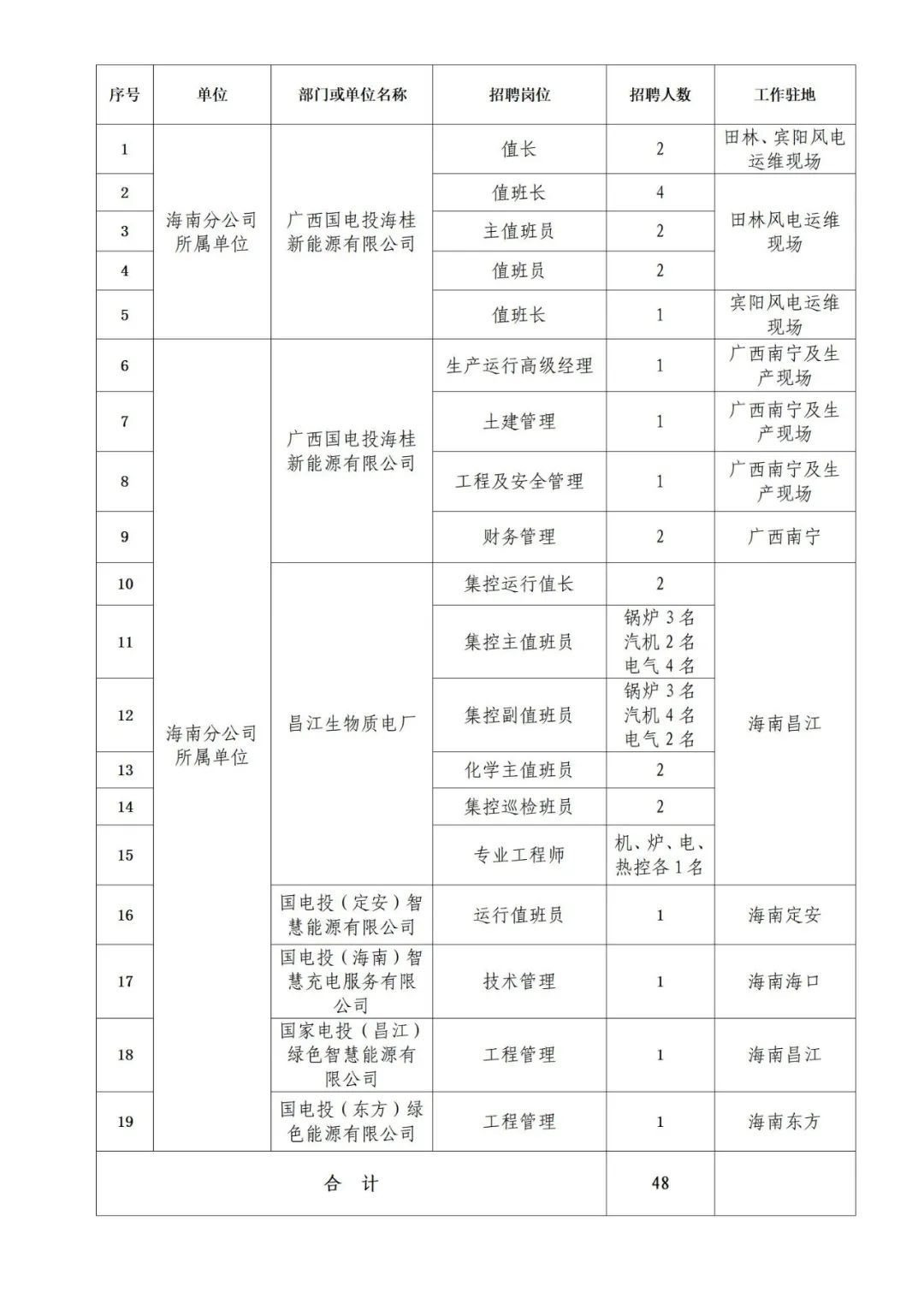 詳見《國家電力投資集團有限公司海南分公司及所屬單位招聘崗位職責(zé)及任職條件》(附件1)。
