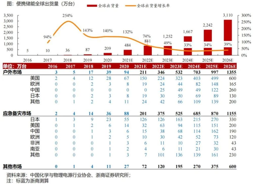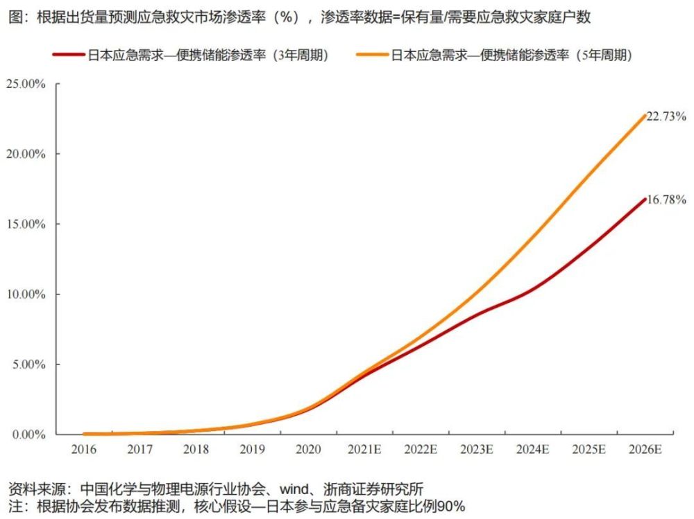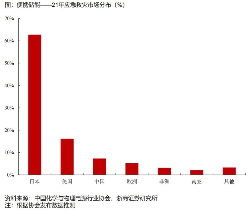 此外,在日本市場,21年應(yīng)急救災(zāi)需求出貨量占其總便攜儲能市場的87%。具體如下圖所示: