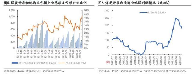 2023 年至今煤價中樞有所下移,煤炭行業(yè)虧損程度擴大。據(jù)國家統(tǒng)計局,截至 2023 年6 月底,全國規(guī)模以上煤炭企業(yè) 4890 家,較去年同期增加 326 家,較 2022 年底增加 272 家。