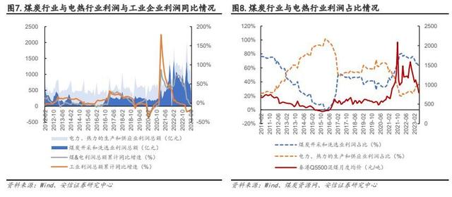 煤、電利潤重新分配下,煤電聯(lián)營或是優(yōu)質(zhì)選擇。立足于“富煤貧油少氣”的基本國情,我國形成了煤電為主、氣電為輔、生物質(zhì)發(fā)電為補充的火電發(fā)展格局。截至 2023 年 6 月,全國火電裝機 13.57 億千瓦,占發(fā)電總裝機容量的 50%(Wind)。作為關(guān)鍵的電網(wǎng)安全支撐,火電有力滿足了經(jīng)濟社會發(fā)展需要,成為我國能源供應(yīng)安全的壓艙石和基本盤。2021 年 10 月至今,由于上游供給約束導(dǎo)致的煤價高漲使得煤、電行業(yè)的利潤分配出現(xiàn)了不平衡,2021 年煤炭開采和洗選業(yè)利潤總額同比+212.7%,電力、熱力的生產(chǎn)和供應(yīng)業(yè)同比-57.1%,煤炭行業(yè)利潤總額占雙方合計利潤總額比達到 80%。2023 年前 6 月煤炭開采和洗選業(yè)利潤總額同比23.3%,電力、熱力的生產(chǎn)和供應(yīng)業(yè)同比+46.4%,煤炭行業(yè)利潤總額占雙方合計利潤總額比自2022 年 76%下降至 62%。而 2016 年供給側(cè)改革后雙方利潤分配基本維持在各半水平,因此煤炭行業(yè)或仍面臨業(yè)績下行的壓力。在煤、電利潤重新分配的時點下,為解決上述煤電矛盾,煤電聯(lián)營或許是優(yōu)質(zhì)選擇。