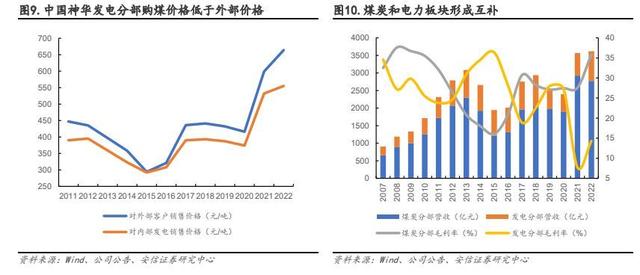 平抑周期波動、協(xié)同上下游降本,煤電一體強化業(yè)績穩(wěn)定性。煤電聯(lián)營可以使煤企和電企建立一種互補的、長效的利益共享、風(fēng)險共擔(dān)的機制,降低因為煤價波動帶來的經(jīng)營風(fēng)險,確保電廠燃料長期穩(wěn)定供應(yīng)的同時還可減少中間采購環(huán)節(jié),大幅降低發(fā)電成本并鎖定下游火電利潤。以中國神華為例:1)內(nèi)部降本方面,據(jù)公司年報,2011 年至今中國神華發(fā)電分部80%以上煤炭源于內(nèi)部采購,且采購價格均低于外部銷售價格,最大限度降低電廠用煤成本。