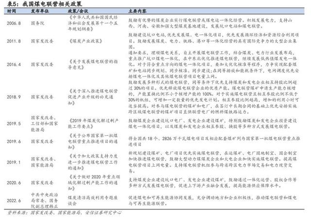 2016 年 4 月,國家發(fā)改委印發(fā)的《關(guān)于發(fā)展煤電聯(lián)營的指導(dǎo)意見》指出,煤電聯(lián)營是指煤炭和電力生產(chǎn)企業(yè)以資本為紐帶,通過資本融合、兼并重組、相互參股、戰(zhàn)略合作、長期穩(wěn)定協(xié)議、資產(chǎn)聯(lián)營和一體化項目等方式,將煤炭、電力上下游產(chǎn)業(yè)有機融合的能源企業(yè)發(fā)展模式。此后,國家持續(xù)推進煤電聯(lián)營的相關(guān)政策,貴州省政府更是在 2020 年發(fā)布《貴州省煤電聯(lián)營實施方案》,要求 2022 年省內(nèi)現(xiàn)役煤電企業(yè)煤電聯(lián)營實現(xiàn)全覆蓋,所有在建擬建燃煤發(fā)電項目實現(xiàn)煤電聯(lián)營,對規(guī)劃建設(shè)煤電項目和煤炭項目,按照國家要求,必須實行煤電聯(lián)營,重點推動煤電一體化、大比例交叉持股等聯(lián)營方式。