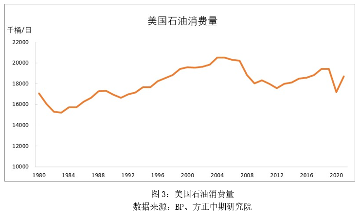 一、石油消費(fèi)在美國(guó)能源消費(fèi)結(jié)構(gòu)中占比下降