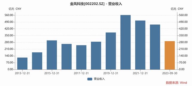 自從2020國內(nèi)陸風搶裝后,2021-2022風電的裝機迎來了階段性的下滑,2021年累計裝機下滑34%,2022年累計裝機下滑21%。裝機量下滑,再疊加價格戰(zhàn)加劇,整機商日子自然越來越難過。整機商龍頭金風科技的營收規(guī)模從2021年開始至今均持續(xù)下滑,近兩年利潤表現(xiàn)也越來越差。