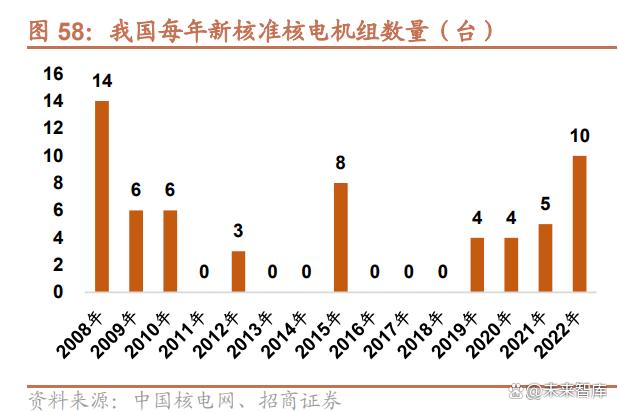 量:根據(jù)“十四五“規(guī)劃,2025 年我國在運+在建核電裝機容量將超過 100GW。“十四五”現(xiàn)代能源體系規(guī)劃 提出,在確保安全的前提下,積極有序推動沿海核電項目的建設(shè),保持平穩(wěn)建設(shè)節(jié)奏,合理布局新增沿海核電項 目。開展核能綜合利用示范,積極推動高溫氣冷堆、快堆、模塊化小型堆、海上浮動堆等先進堆型示范工程,推 動核能在清潔供暖、工業(yè)供熱、海水淡化等領(lǐng)域的綜合利用。切實做好核電廠址資源保護。據(jù)中國核能協(xié)會及有 關(guān)機構(gòu)預(yù)測,到 2025 年,我國核電在運裝機規(guī)模將達到 7000 萬千瓦左右,在建裝機規(guī)模接近 4000 萬千瓦; 到 2035 年,我國核電在運和在建裝機容量將達到 2 億千瓦左右,發(fā)電量約占全國發(fā)電量的 10%左右。未來 15 年仍是我國核電發(fā)展的重要戰(zhàn)略機遇期。